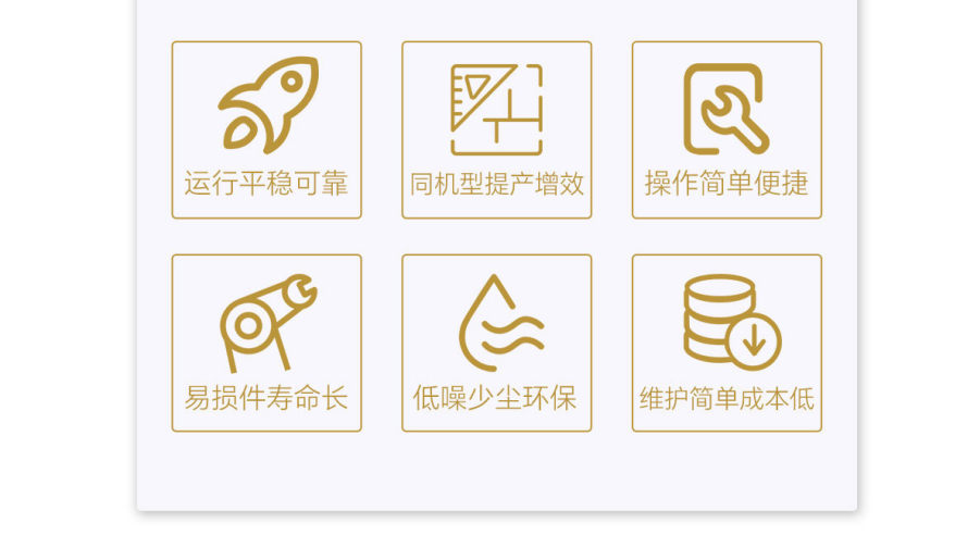 優(yōu)勢(shì)特點(diǎn):運(yùn)行平穩(wěn)可靠、同機(jī)型提產(chǎn)增效、操作簡(jiǎn)單便捷、易損件壽命長(zhǎng)、低噪少塵環(huán)保、維護(hù)簡(jiǎn)單成本低
